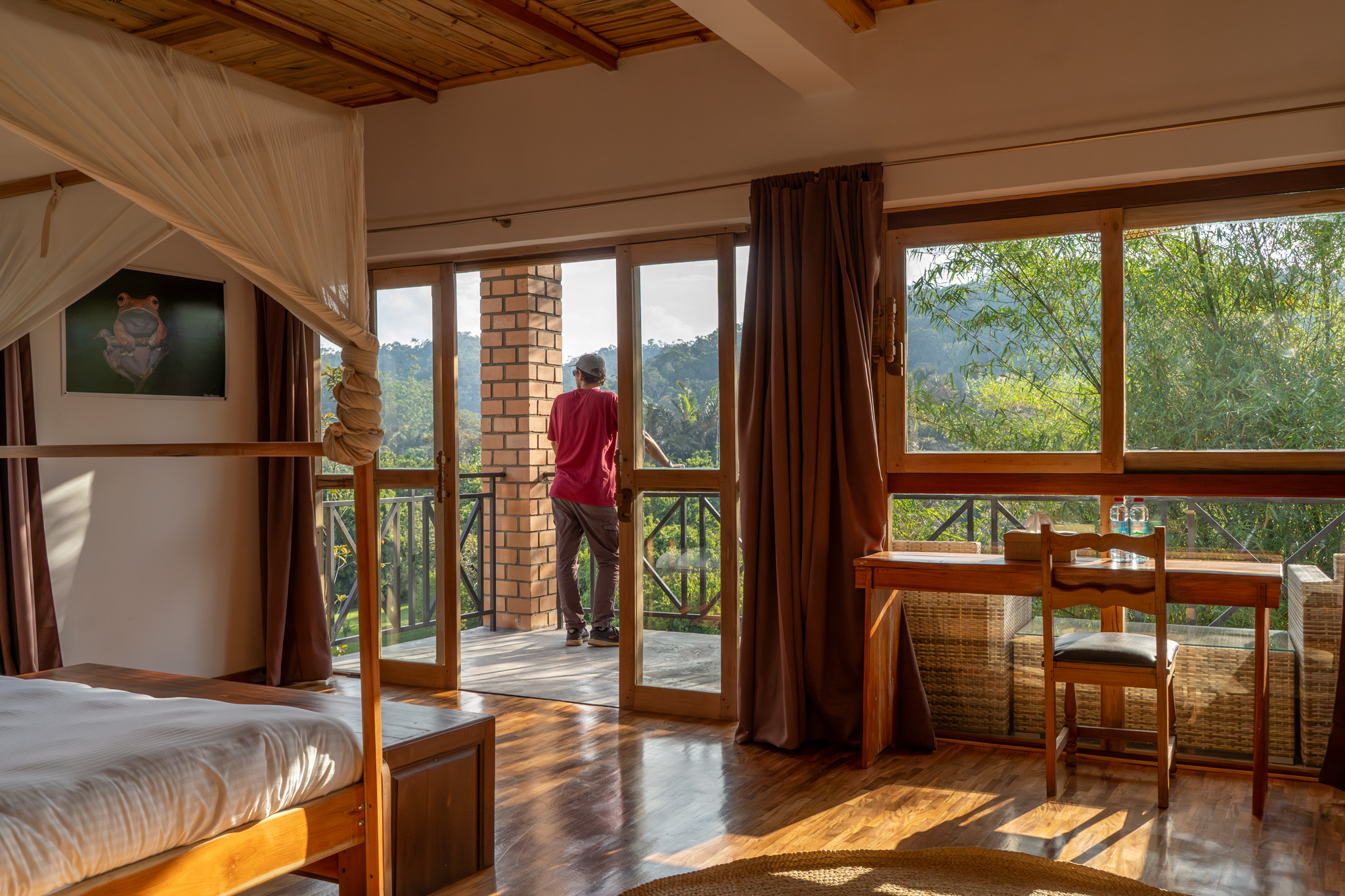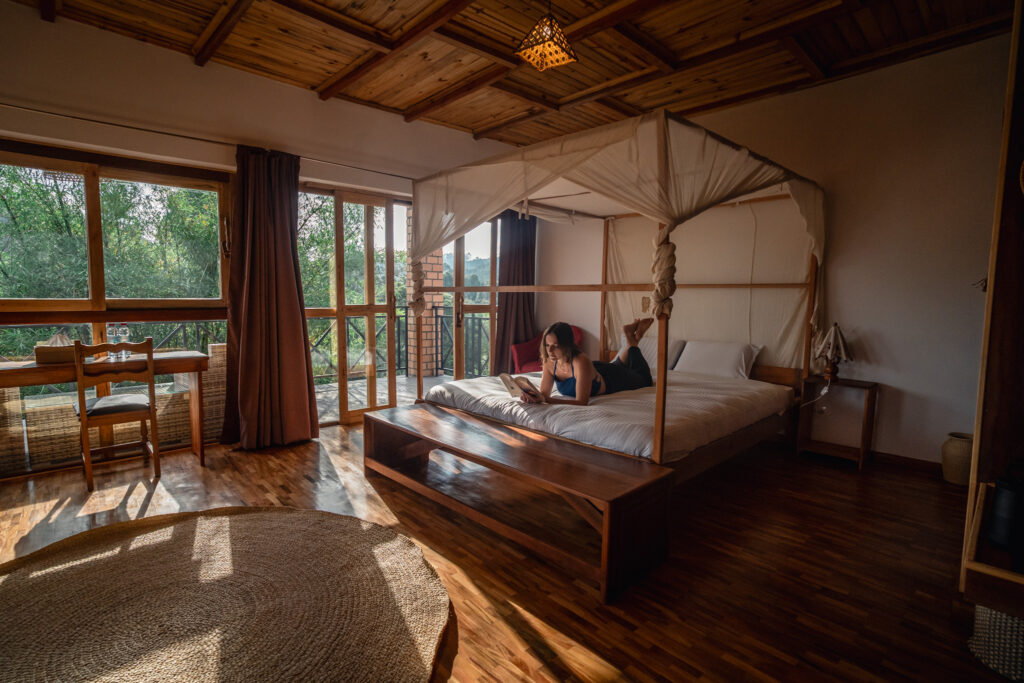 À l’intérieur, l’ambiance reste élégante, simple et cosy, pensée pour se reposer après une journée d’exploration à Andasibe. Et côté confort, c’est clair : la chambre est équipée de 2 grands lits doubles, parfait si vous voyagez à deux et que vous aimez avoir de la place, ou si vous venez entre amis / en famille avec un vrai confort de couchage.